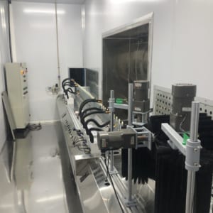 hình ảnh được chụp bên ngoài của toàn bộ dây chuyền phun sơn tự động chai lọ, lắp chai…